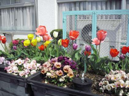 また、校庭には、きれいなチューリップの花が咲き、春の訪れを強く感じるとともに、心を和ませてくれています。(2)