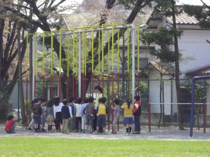 今日の3時間目は、校庭にある遊具の使い方を学んでいました。