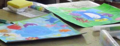 今日2年生の図工では、今校庭にきれいに咲いている花を絵の具やクレヨン等をつかって描く学習を行っていました。色とりどりの花が画用紙に描かれ、心が和みました。