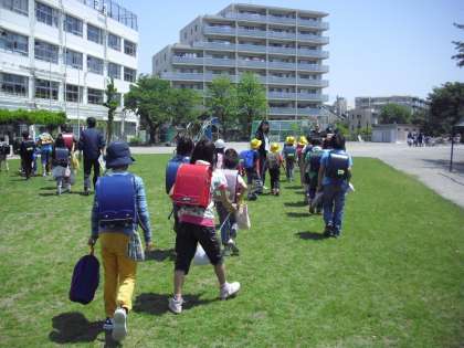 今日3校時に台風の接近により風水害の恐れがあるとの想定で、集団下校訓練を行いました。