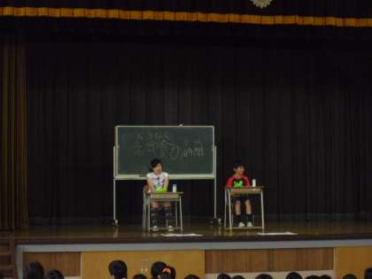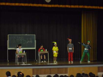 給食の時間を劇にし、メニューにだされるものに含まれている栄養について、クイズ形式にしたものでした。