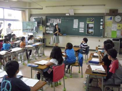 今日は、3年1組で今年度第1回の研究授業を行いました。理科の「かげと太陽」の授業でした。