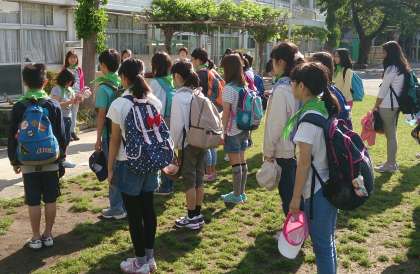 いざ鎌倉!今日は6年生の遠足です。さすが6年生。出発式は、自分達で司会をします。楽しい遠足になりそうです。