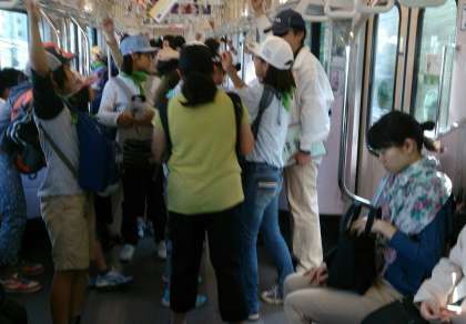 予定通りに千歳船橋に到着し、小田急線で藤沢まで行きました。ラッシュで大変でしたが、みんなよく頑張りました。