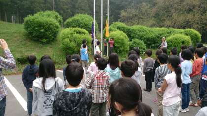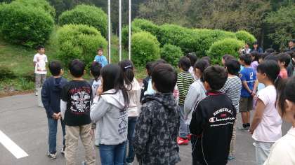 無事になかのビレジに到着しました。3日間一緒に過ごす奥沢小と開室式を行いました。