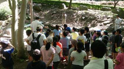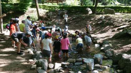 無事ハイキングを終え、午後2時30からマスつかみです。思ったより難しく、悪戦苦闘です。