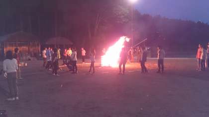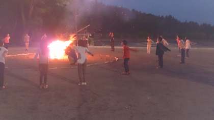 雷雨が心配されましたが、キャンプファイアが予定通り行われました。大盛り上がりで、踊りを踊っていました。