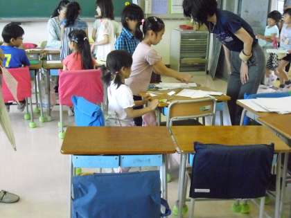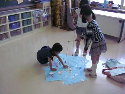 2年生は、ボーリング、レース、さかなつり、なぞなぞ、宝探し、おりがみ・工作の店を出店しました。