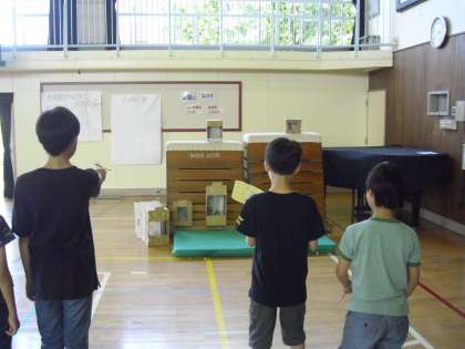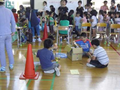 4年生は、射的、かんつみ、宝探し、わりばしおとしを出店しました。射的やかんつみは集中力が必要で、参加している子供たちがうまくできるように、4年生がいろいろアドバイスをしてあげていました。(78)