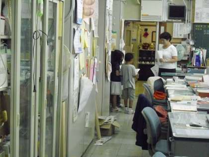 今日は、昨日に引き続き、1年1組が学校探検で校長室に来てくれました。職員室では、副校長先生に子供たちがインタビューをしていました。