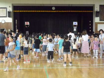 今日の朝の時間は、集会委員会による「みんなで楽しもう集会」を行いました。