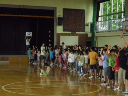 先生方に関する○×クイズで、子供たちは、とても楽しそうに活動していました。