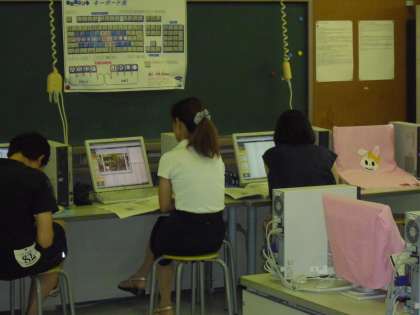 思い思いの写真をもちより、行事の思い出に浸りながら、作成するためにパソコンに向かっていました。