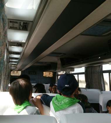 バスレクを行っています。伝言ゲームで盛り上がっています。