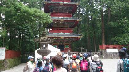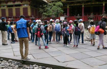 東照宮の中をガイドさんの案内でまわっています。みんな真剣に聞いています。