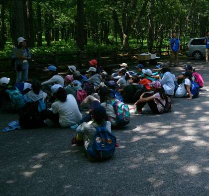 しゃくなげ橋に到着しました。心に残ったことを短歌や俳句を作って表現しています。