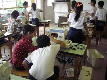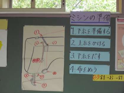 今日5年生は、家庭科の時間に「ミシンの使い方」について学習していました。