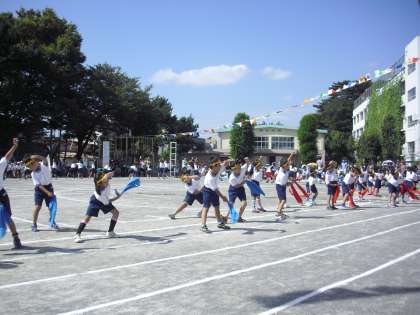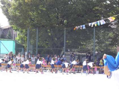1・2年生の表現「モンキーマジック」では、かわいらしい1年生とお兄さん・お姉さんになった2年生が校庭せましと踊りをおどりました。(159)