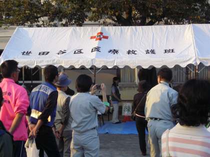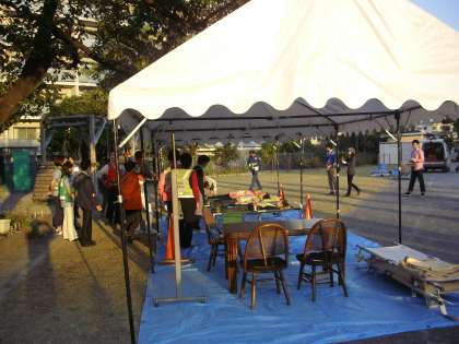 午後4時からは、医師会の方々のご協力をいただいて、医療救護所訓練が行われました。