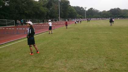 6年生の子どもたちはコンディションが十分とは言えない中、自己ベストを出そうと一生懸命競技を行っていました。また、ハードルでは、倒れたハードルをなおしたり、濡れた地面の水を拭き取ったりする仕事を行いました。