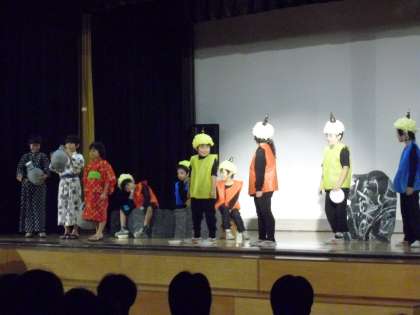 3年生は「おにのたいこ」を演じました。子どもたちのさわやかな演技で劇はすすみ、劇中の「子ども」が助かったときは、劇とはいえ、ほっとしました。それだけ集中してみることができたのですね。(199)