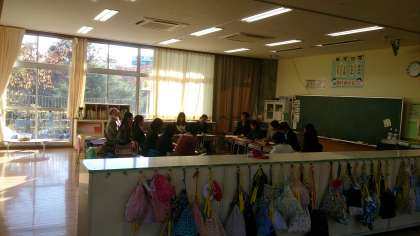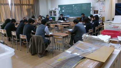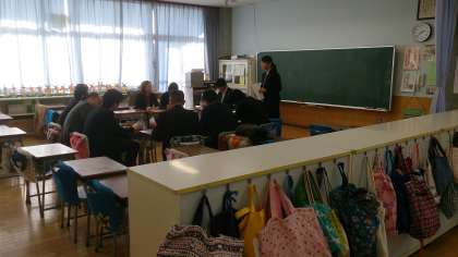 授業を参観した後は、授業についての協議を行っています。児童・生徒が考えるための方法について、学んでいます。