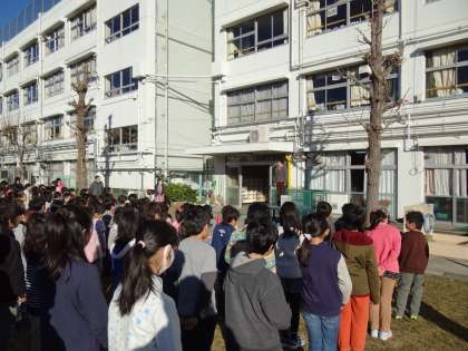 とても寒い朝でしたが、児童は興味深く聞き入っていました。
