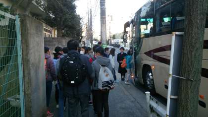 6年生最後の校外学習です。晴天に恵まれさわやかに出発しました。