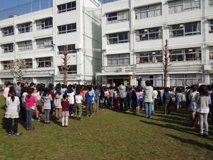 卒業を前に、靴箱の掃除をしてくれた6年生に、全校児童から感謝の拍手が送られました。