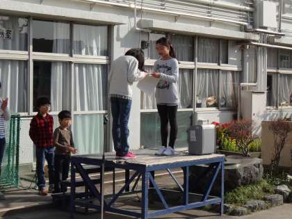 また、エコ委員会から、リサイクルに最も協力してくれた3つの学級に「地球のためにがんばったで賞」が贈られました。