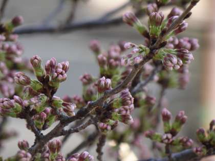 正門脇のソメイヨシノも、ほんのりピンク色に染まりました!
