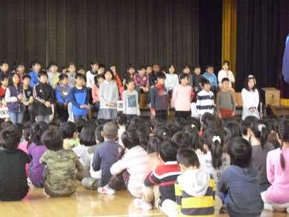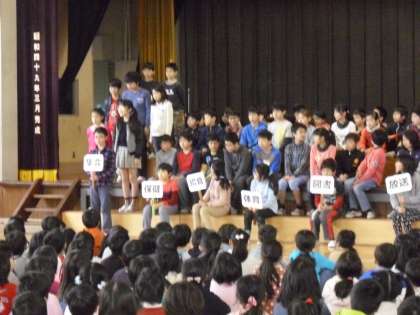 代表委員の紹介も行われ、初めてなった3年生の代表の児童がとても緊張していました。