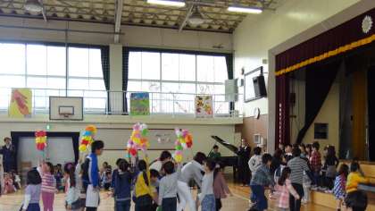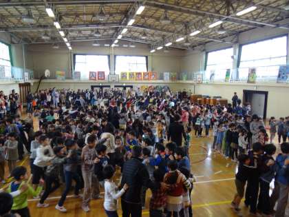 代表委員会の企画で、各学年の紹介・先生当てクイズ・じゃんけん列車のゲームを全校で行い、体育館は大盛り上がり。