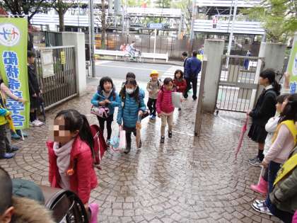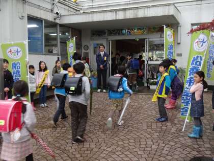 本校の3年生の児童と、船橋希望中の生徒が毎朝正門に立ち、元気よくあいさつを交わしています。