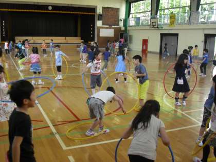 中休みは、1,2年みんなで体育館遊びをました。これも楽しそうでした。