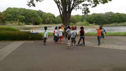広い場所なので、昼食後の運動で元気に遊んでいます。学校都は違う楽しさですね。