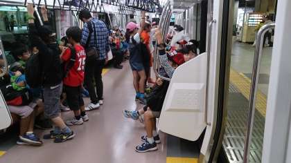昭和記念公園を出発して南武線に乗っています。少し疲れた様子です。