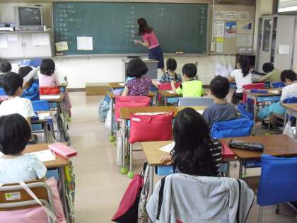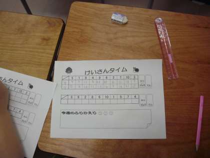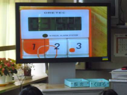 今日の朝の時間は、計算タイムを全校一斉に行いました。2年生は「30マス計算」に取り組んでいました。「校長先生、40秒でできたよ!」と報告してくれた児童もいました。計算は速く、正確にできることが重要です。2年3組の教室では、電子黒板にタイマーを映し、児童が自分で時間が分かるように工夫して行っていました。(46)