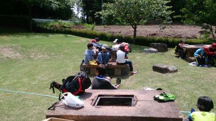 ハイキングが、無事終わりました。これからマスつかみを行います。水の中、気持ちよさそうです。