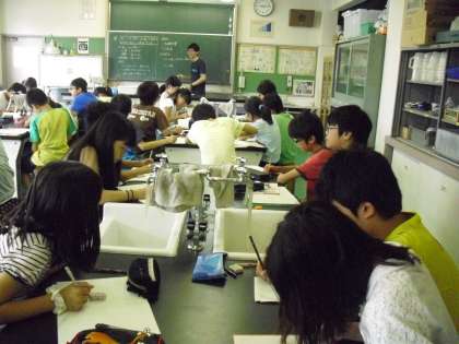 感心したのは、どの児童も学習していることをノートに記入したり、実験の際には、机の上にあるものを中にしまい、机の上に何もない状態を教員に指示されることなく行っていたりしたことです。実験の予想もきちんとたてられ、問題解決的な学習が行われていました。