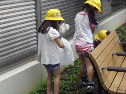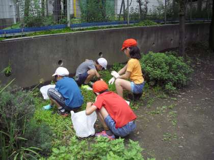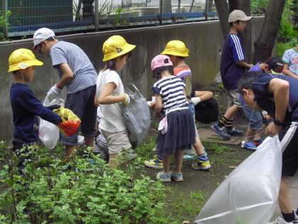 今日の4校時は、希望っ子班ごとに地域美化タイムを行いました。この行事は、各学期に行っています。軍手とビニール袋を持って、ゴミを拾ったり、雑草を抜いたりと、子どもたちは一生懸命作業を行っていました。5、6年生が下学年の子供たちにやさしく声をかけていました。(134)
