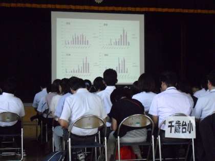 今日の午後2時より、希望丘小学校、船橋希望中学校、船橋小学校、千歳台小学校の教員が本校に集まり、船橋希望学舎合同会議を行っています。この会議は、学舎4校の児童・生徒の学習状況を確認し、共通した取組を行うことによって、児童生徒が円滑な義務教育9年間の学校生活を送ることができるようになることを目的として行っています。