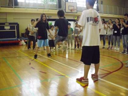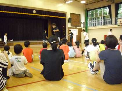 今日の午後2時から、体育館でPTAの方々による全校親睦会が行われました。全校親睦会は4年ぶりの開催で、今回は、日本大学の方々に「ダブルダッチ」を教えていただきました。見た限りでは、大変難しそうで、できるかなと思っていましたが、適切なアドバイスによって、結構うまくできていました。リズム感がとても大切だと思いました。