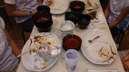 食事が終わったら、食器を並べます。マナーが大変良いです。