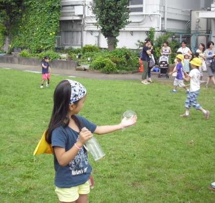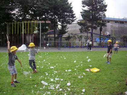 先週の土曜授業に1年生は校庭でシャボン玉をつくり、とばしました。いろいろなものをつかってつくり、大きいものをつくったり、小さいものをたくさんつくるなどし、工夫していました。シャボン玉をつくっている時のうれしそうな表情がとてもよかったです。(207)