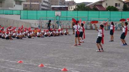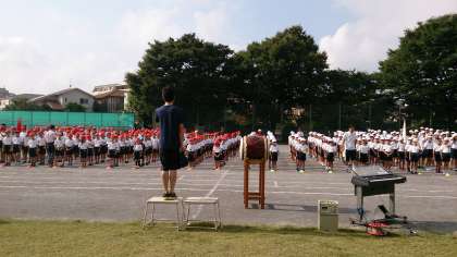 今日は朝から、全校練習をしました。いよいよ運動会が近くなってきました。暑い中、みんなよくがんばりました。(221)
