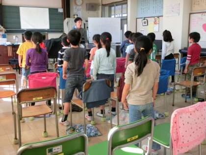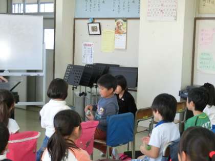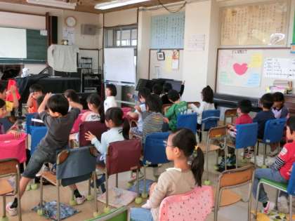 今日の5校時2年3組は、音楽の授業を行いました。ピアノの合図で静かに立ち、「まっかな秋」をとてもきれいに歌っていました。リズムに合わせて友達の名前を読んだり、音楽を聴いて体を動かしたりとても楽しく学んでいました。(240)