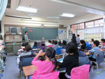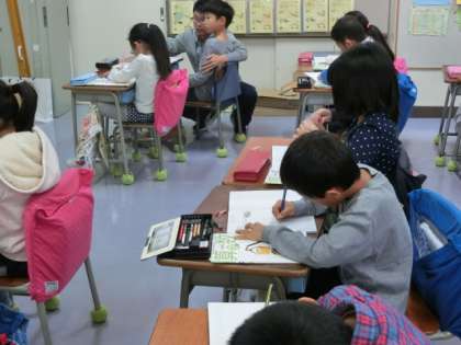 今日の3校時2年1組では、算数のかけ算の授業を行っていました。てんとう虫の星の数を数える学習で、てんとう虫の数の数が1増えると足の数は7増えるということを見つけ出し、10匹のてんとう虫の足の数まで求めていました。これからいよいよかけ算九九を覚える学習に入ります。(249)