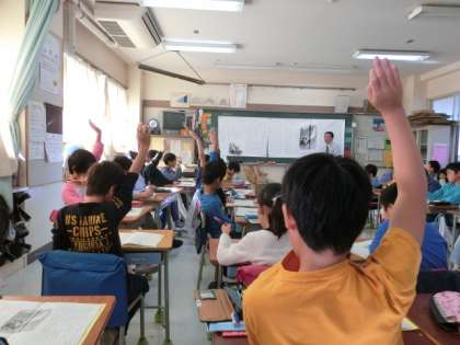 今日の4校時4年1組では、国語の授業を行っていました。物語文「ごんぎつね」の学習で、子どもたちは、文章を丹念に読み、わからない言葉や、主人公などの行動で考えてみたい箇所に線を引き、話し合い活動を行いながら学習をすすめていました。(祝250)