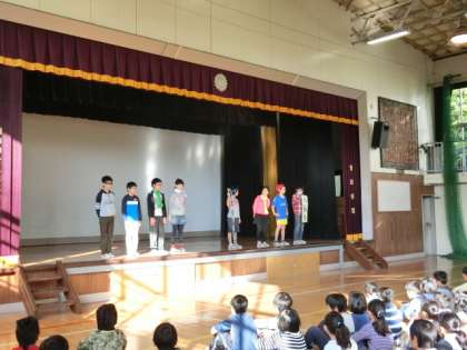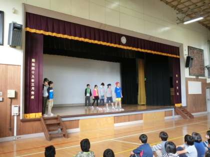 今日の朝の時間は、保健委員会の発表集会がありました。寒くなってきて、これからインフルエンザやノロウィルス等が流行してきます。今日の発表では、劇を交えながら、感染を防ぐためには、手洗い、うがいの励行、食事や睡眠に留意することなどが大切であることについて、分かりやすく発表してくれました。今日の集会で学んだことをいかして、元気に学校生活が送れるようにしていきたいと思います。(255)